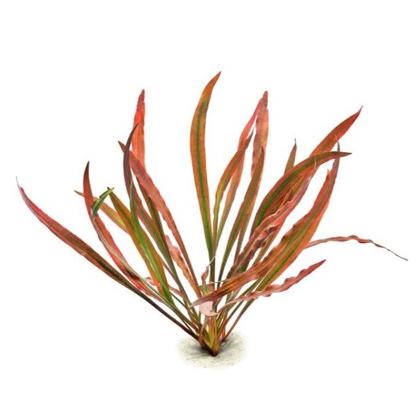 Cryptocoryne spiralis ‚Red‘ kommt sicher am besten als solitärer, vielblättriger Busch im Mittelgrund von nicht zu kleinen Aquarien zur Geltung. Mit ihren braunrot und grün gezeichneten Blättern zieht sie die Blicke auf sich und kontrastiert mit hellgrünen Pflanzen.
