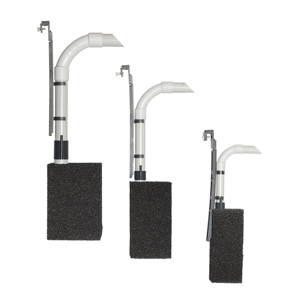- Halter höhenverstellbar, einhängbar an den Scheiben des Aquariums bis 12 mm Glasstärke, sowie an den Versteifungsstegen durch drehen des Befestigungswinkels
