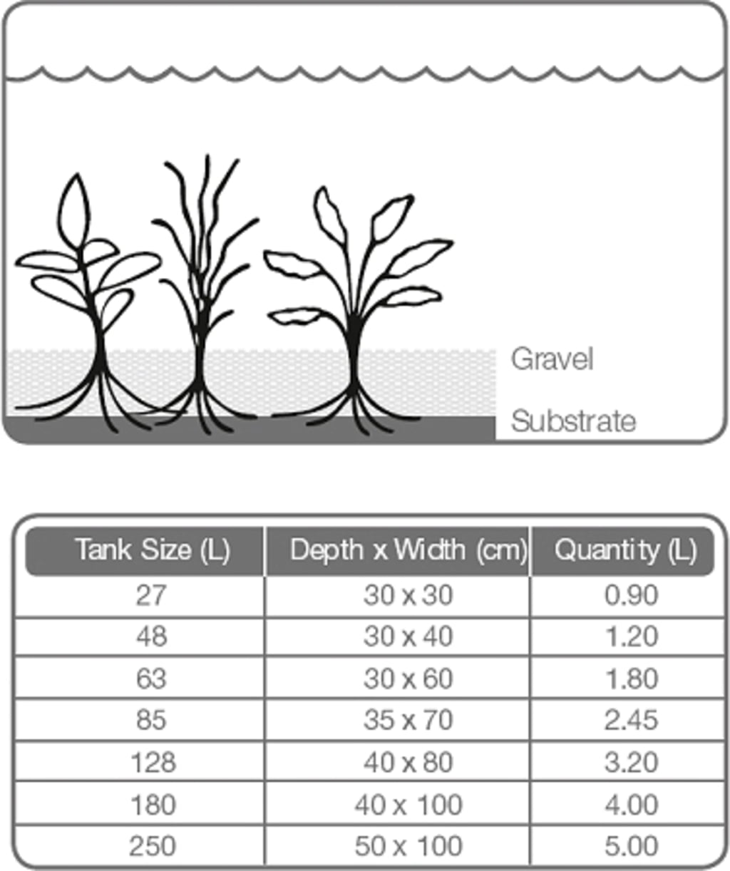 Das Tropica Substrate wird mit einer Schichtstärke von 2-4cm auf den Aquarienboden gegeben. Anschließend wird es mit einer ca. 4 cm starken Schicht Aquarienkies bedeckt.